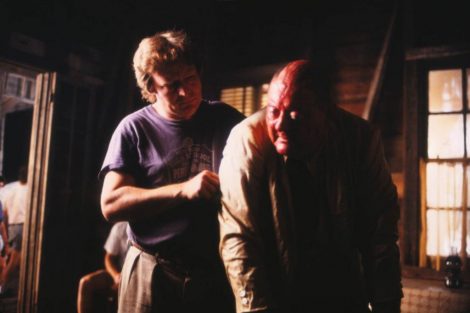 We had built the interior of the gumbo hut (where Harry confronts Krusemark,) in a disused bus depot; once again an instant studio. It was a very dangerous scene, verbally and physically, and suddenly Stocker Fontelieu, who played Ethan, had blood trickling down from his temples from the rusty, but still sharp, ice tongs which Mickey had clamped too tightly to the sides of his head. My first reaction was that it seemed most effective: a rather nice shot. My second reaction was that I didn’t ask the makeup people for blood. My third reaction was that it was real blood and that I was looking at Stocker who was really hurt, and so we abandoned the scene for the day. We would try again on Monday with Stocker duly patched up and with the ice tongs suitably blunted before they were entrusted to Mickey’s care.